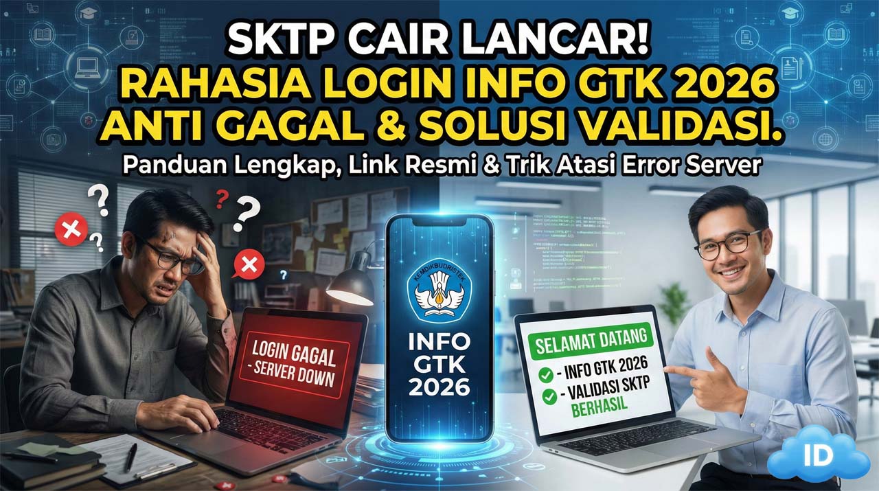 Artikel komprehensif sepanjang lebih dari 3000 kata ini disusun sebagai “Buku Saku Digital” definitif bagi seluruh tenaga pendidik di Indonesia. Kami akan membedah tuntas anatomi Info GTK 2026. Mulai dari pemahaman dasar integrasi Dapodik, persiapan akun PTK (Pendidik dan Tenaga Kependidikan) yang terverifikasi, tutorial login resmi langkah demi langkah yang dijamin “Anti Gagal”, cara jitu menerjemahkan kode status validasi SKTP, hingga taktik teknis (troubleshooting) untuk mengatasi berbagai error yang kerap muncul di layar. Simak panduan paripurna ini agar hak finansial dan profesional Anda sebagai pendidik senantiasa aman dan tersalurkan tepat waktu.